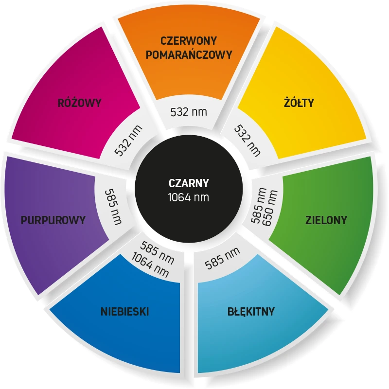 Zakres kolorów usuwalnych laserem pikosekundowym PICOSKIN